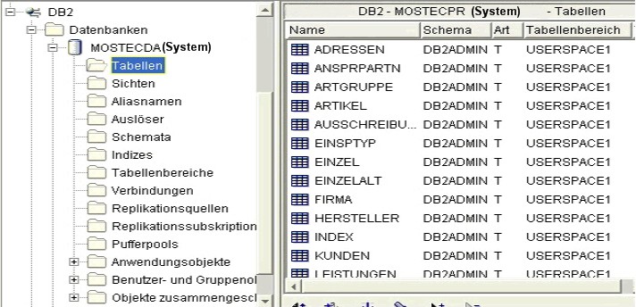 " wurde die Datenbank "DB2" der Firma IBM verwendet. In den nachfolgenden Abschnitten wird nicht auf die Funktionsweise der Datenbank "DB2" eingegangen, sondern die aus dem Konzept "MOStec2000" entstandene Datenbankstruktur erläutert.Die in den Datenbanken hinterlegten Daten werden in zwei Gruppen eingeteilt: