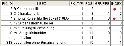 - Die Spalte "FK_TYP" (Funktionskennung Schaltungstyp, ein Verweis möglich) dient zur Zuordnung der Zusätze zu dem entsprechenden "Schaltungstyp".