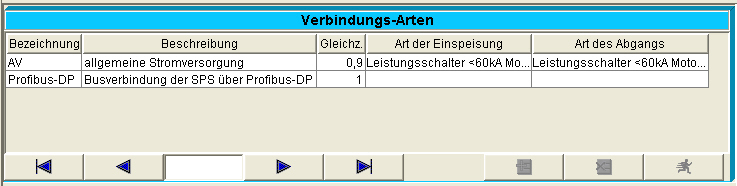 In der Tabelle "ProjxVerbtyp" werden die Verbindungstypen ( AV, SV, SSV, Profibus-DP, Ethernet etc.) hinterlegt die, in der Maske "Netz", zum verbinden der einzelnen Anlagentypen benötigt werden. Diese werden durch die Fa. Mostec definiert und können durch den Anwender, in der Maske "Projektverwaltung", im Fenster "Verbindungs-Arten" entsprechend seiner Vorgaben geändert werden.